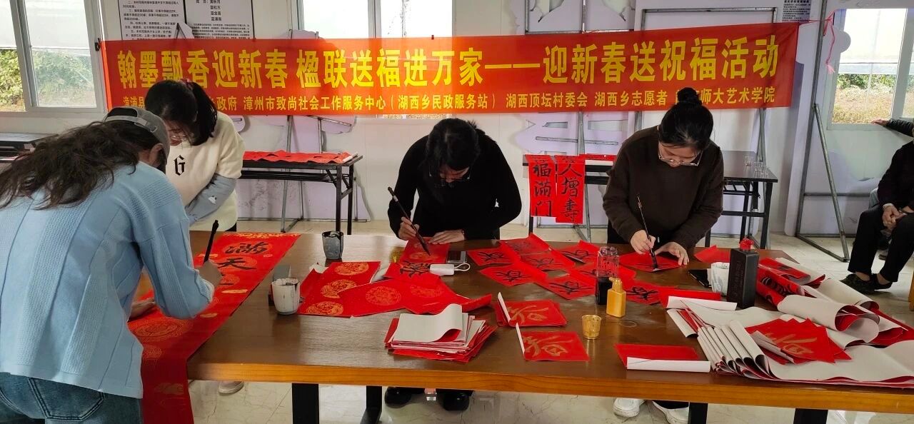 师生携手顶坛村驻村第一书记、致尚社工湖西站及顶坛村委会,走进作为闽台文化交融地、藏有全国重点文物保护单位蓝廷珍纪念馆的漳浦县湖西镇顶坛村,开展“妙笔迎新春,泼墨赠祝福”义写春联活动,将一幅幅寓意吉祥的春联与福字送到古村群众手中,用实际行动传递关怀,让乡亲们在冬日中感受到新春的温暖与社会的情谊。